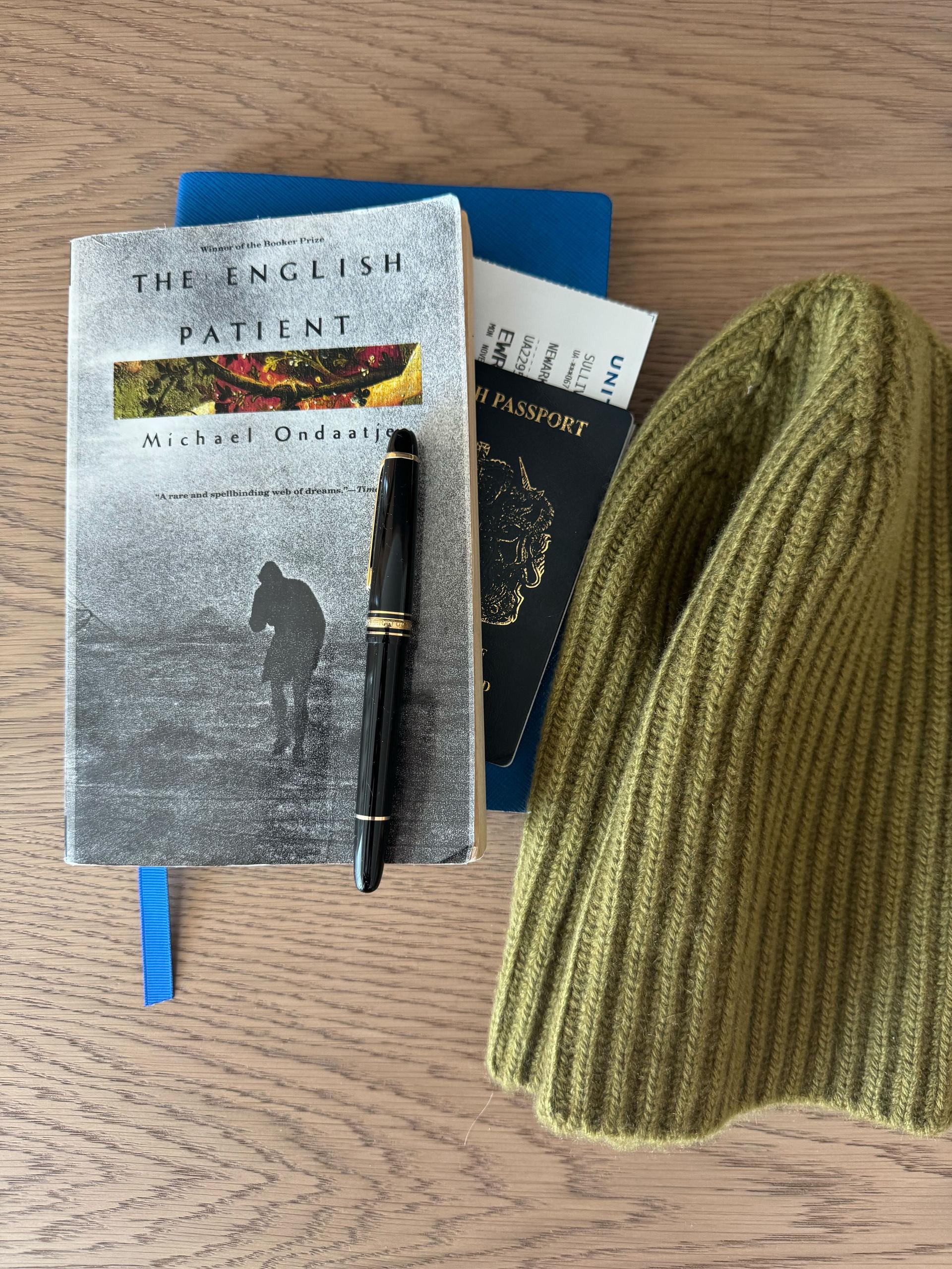 And there's still plenty of room for the essentials: Brave Pudding's knitted booties (the perfect halfway house between sneakers and socks, and better than both); a cashmere beanie from Johnstons of Elgin (a better sleep aid than any pill); a good book (currently Michael Ondaatje's The English Patient and also a sleep aid); and, stretching the point, the Jet Lag Sandwich, a bundle of factory-processed joy bought at Newark before departure and shoved in the fridge at my eventual destination. At two in the morning the next night in some random European city, a humble airport sandwich is just the thing to get you back to sleep when the wideawakeys hit. Trust me, it works, so make space for it.