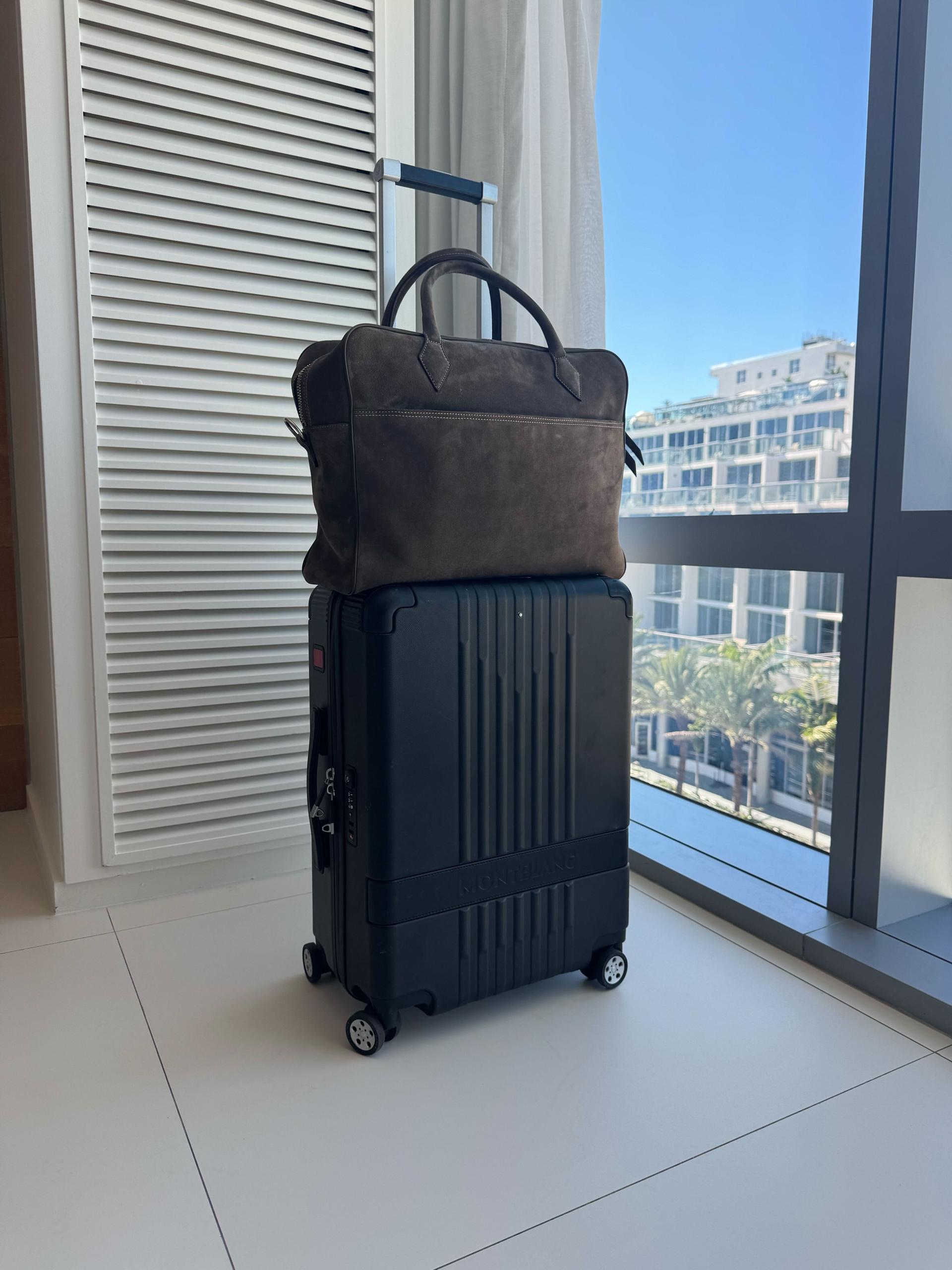 It's taken years of travel to get there, but I always pack more or less the same stuff on every three-to-four day work trip with slight variations for climate, so I'm able to pack it all quickly into the same Montblanc roller bag, the MY4810 (the code comes from the altitude in meters of Europe's highest peak; no prizes for guessing which one). The reason it works so well, apart from having the quietest wheels ever, is that it's made of tough polycarbonate, which makes it both lighter and less susceptible to dents than aluminum. If you read my last newsletter, you'll know I wish it was blue rather than black. No matter. Critically, it's more flexible and much easier to zip closed when I'm trying to cram an extra item in on the way home. I'm on my second one of these as the first finally gave up the ghost a year ago. Fair enough; it had probably done 100 transatlantic flights without a squeak in its lifespan, which makes the long-term investment more than worth it. |