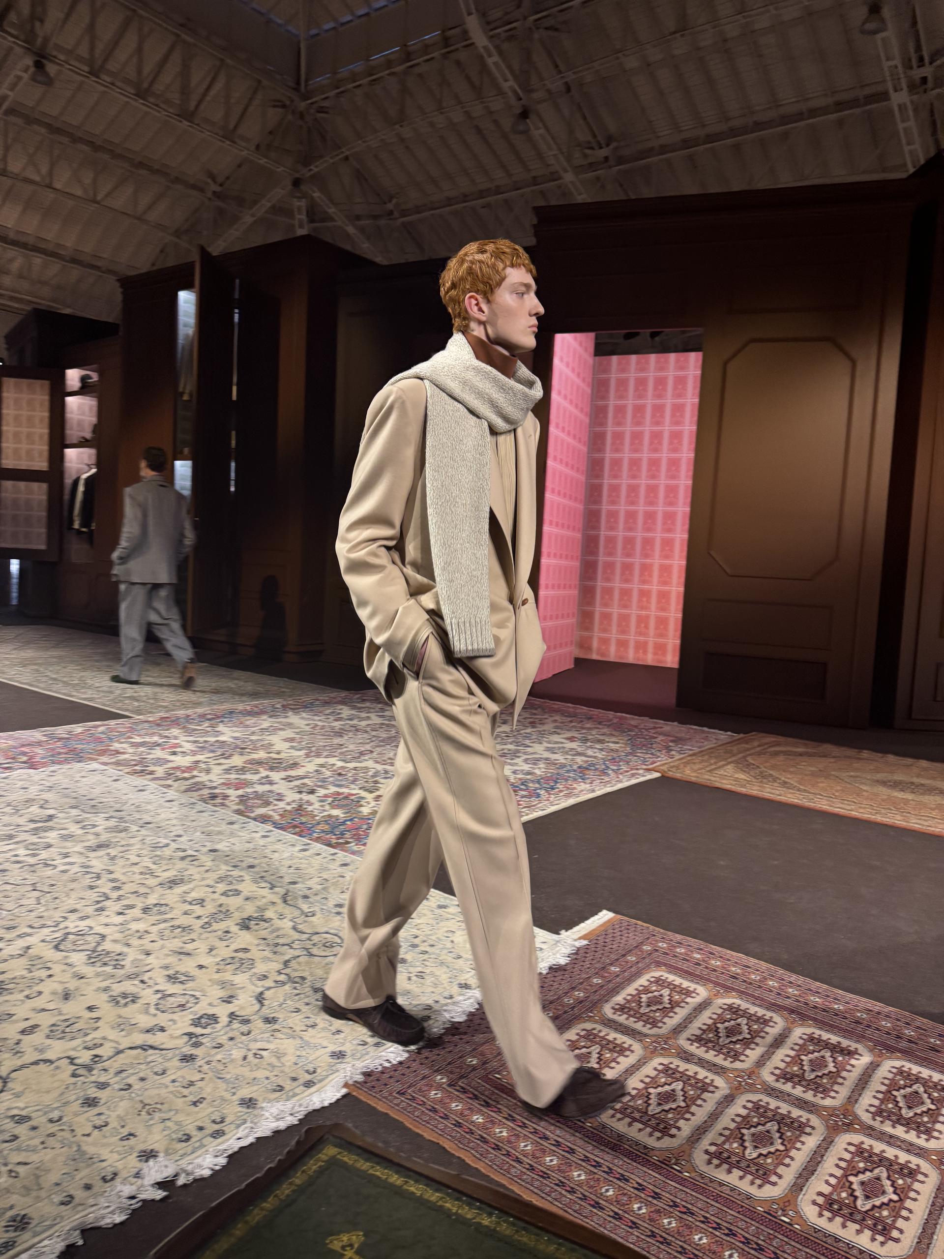 At Zegna's show, classic patterns like gun club checks and houndstooth were felt more luxurious than ever. |
